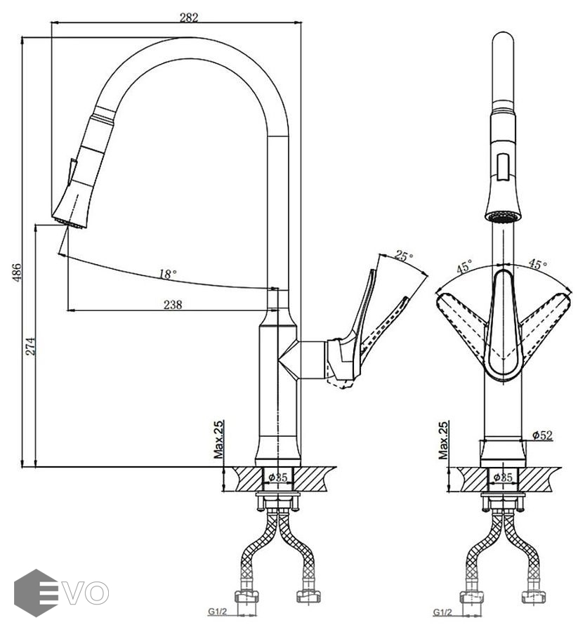 • Стандарт подводки: G 1/2"