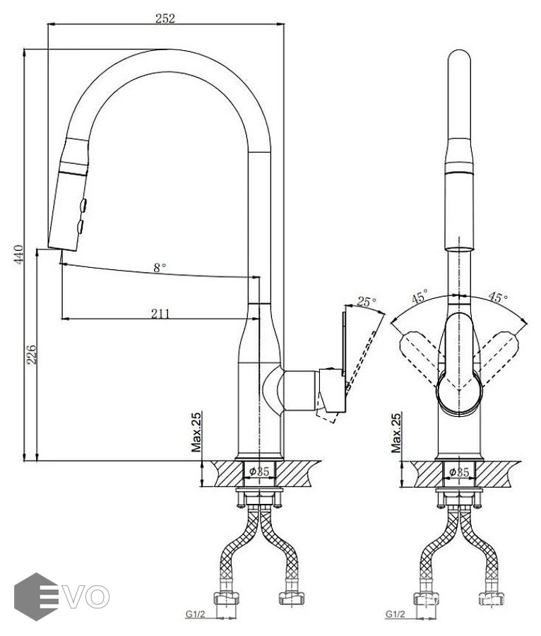 Модель оснащена вытяжной лейкой и керамическим картриджем, обеспечивающим плавный ход рычага смесителя, контроль и точность при выборе напора и температуры воды. Аэратор экономит расход воды, уменьшает шум и снижает количество брызг.