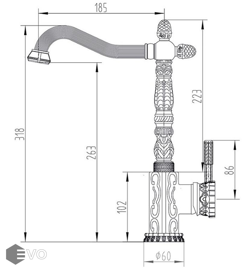 - Высота смесителя: 318 мм