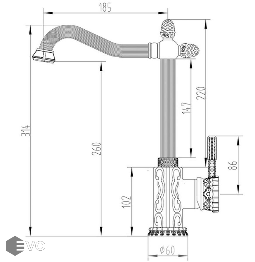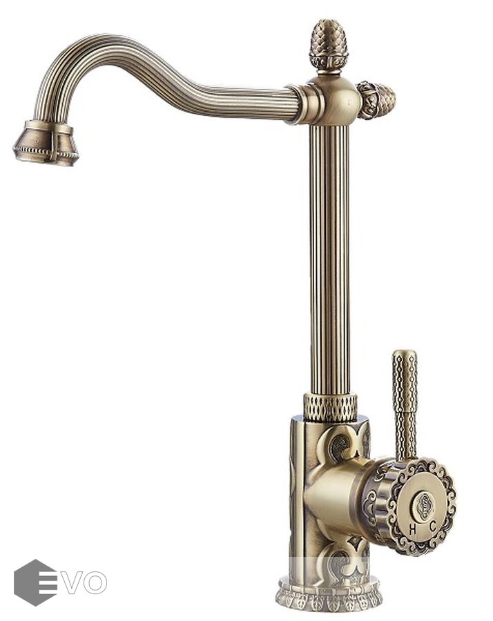 Винтажный стиль смесителя отлично дополнит классический интерьер Вашей кухни. Сочетание необычной формы и рельефного рисунка делают изделие уникальным, не похожим на другие.