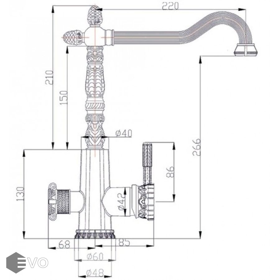 - Высота излива: 266 мм