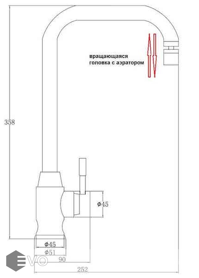 - ВЫСОТА ИЗЛИВА: 358 мм