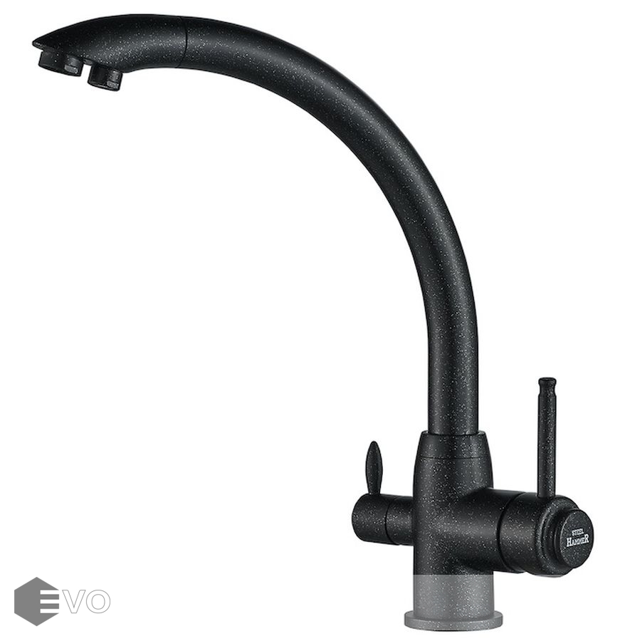 Смеситель под фильтр 2 в 1 для кухни модель SH-699-BLACK представляет коллекцию смесителей Steel Hammer. Технология комбинированного смесителя два в одном позволяет получать водопроводную и очищенную воду из одного смесителя.