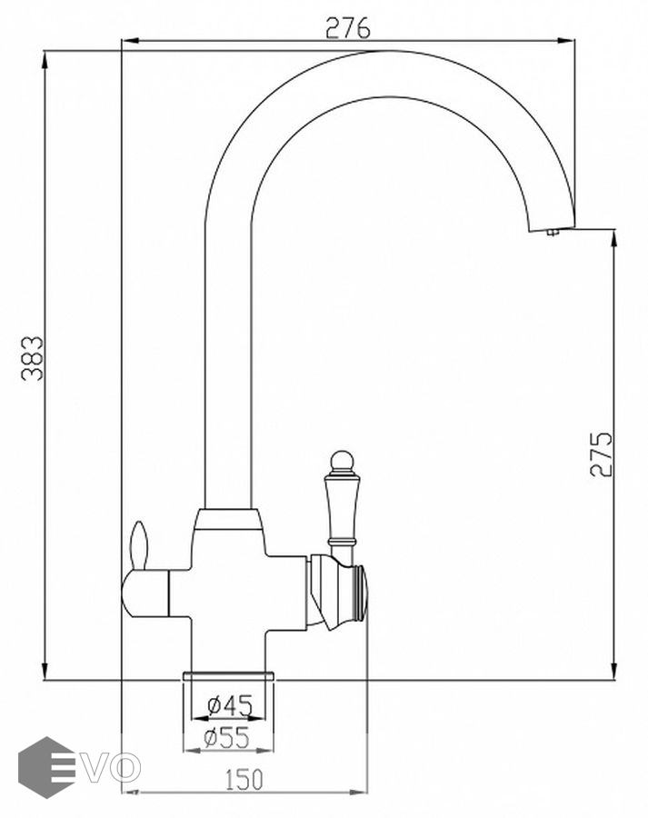 - ДЛИНА ИЗЛИВА: 276 мм