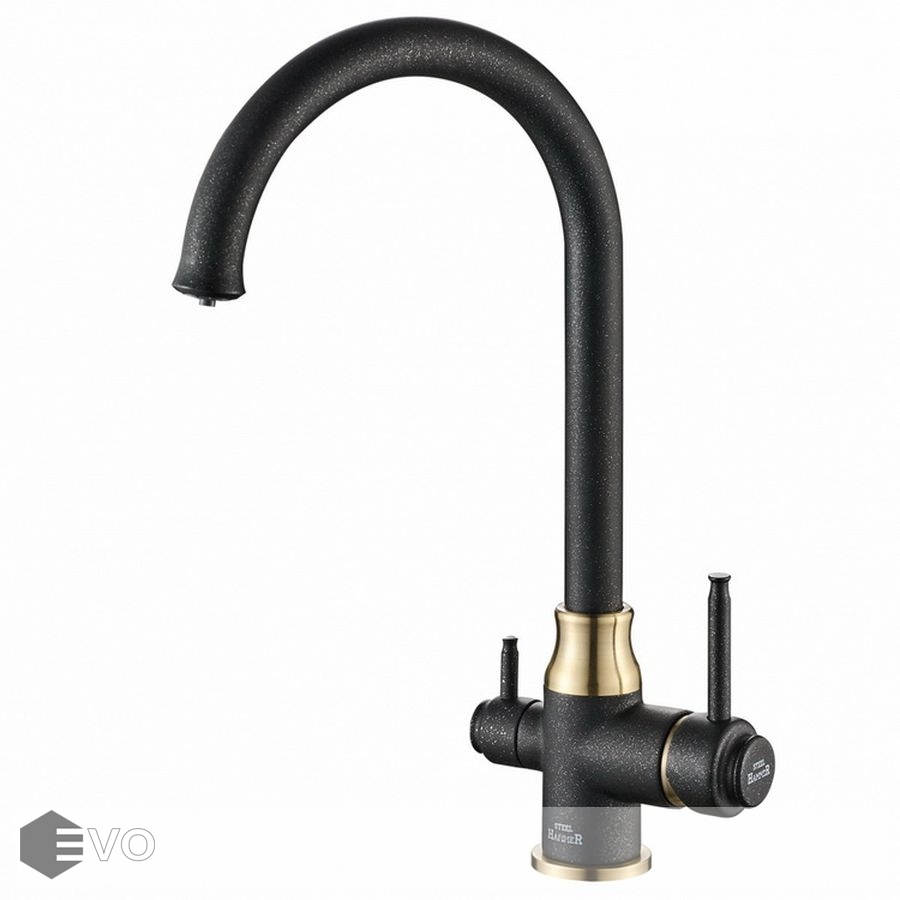 Смеситель под фильтр 2 в 1 для кухни модель SH 763 BLACK BR представляет коллекцию смесителей Steel Hammer.