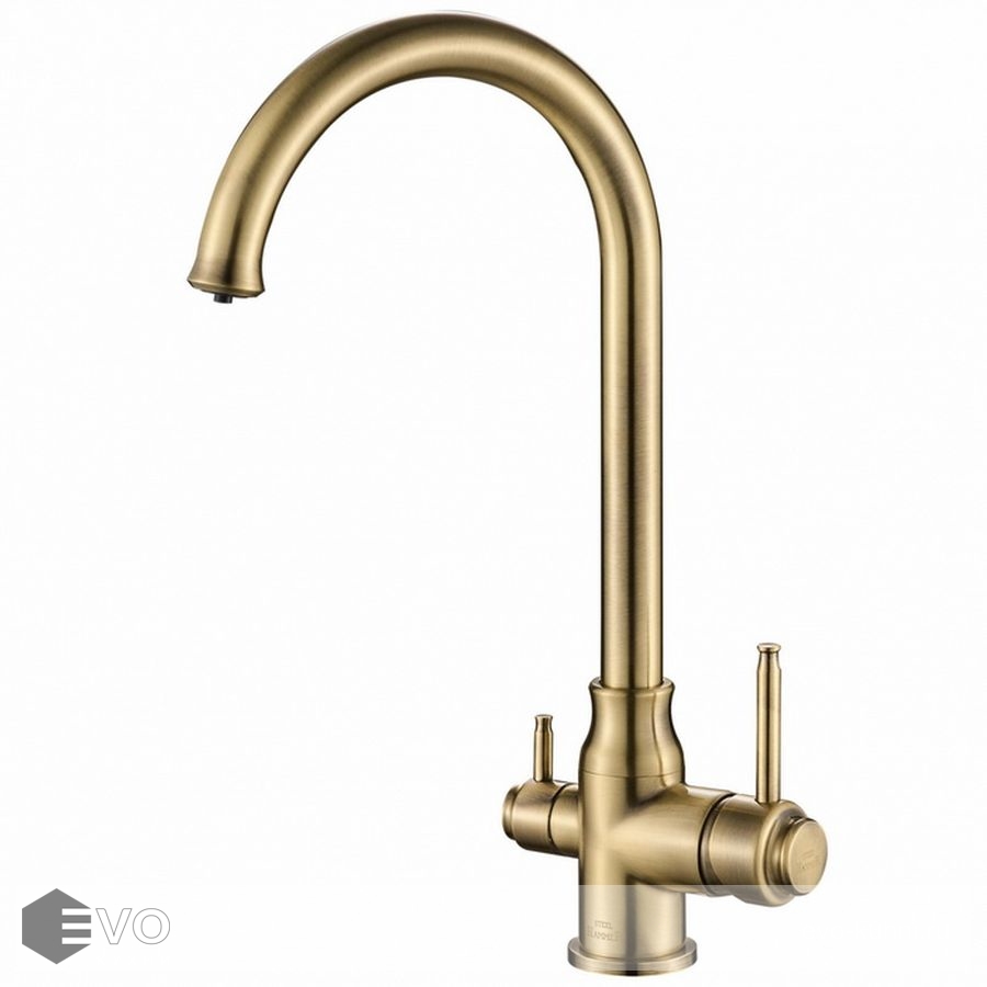 Смеситель под фильтр 2 в 1 для кухни модель SH 763 BR PVD представляет коллекцию смесителей Steel Hammer. Эта модель производится из латуни с последующим приданием поверхности смесителя благородного цвета бронзового оттенка. При изготовлении применяется технология PVD-покрытия. Такое покрытие нанесено специальным способом и не стирается по прошествии времени. Оригинальный классический дизайн в совокупности с удобными размерами кухонного смесителя позволяет использовать его в полной мере . Прекрасно гармонирует с гранитными кухонными мойками других производителей.