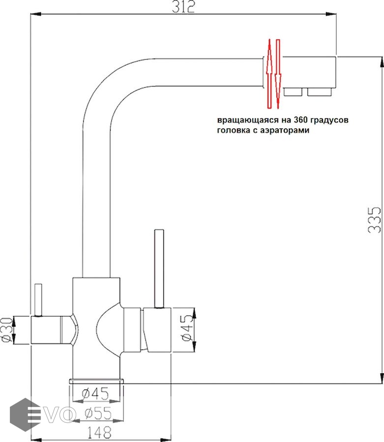 Высота излива: 335 мм