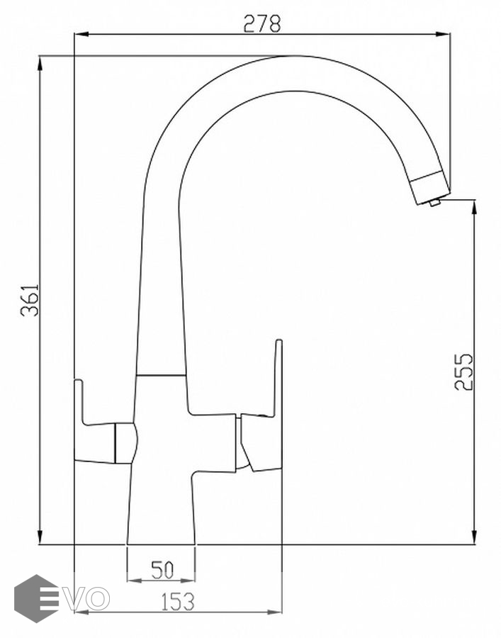 • ВЫСОТА ИЗЛИВА: 255 мм