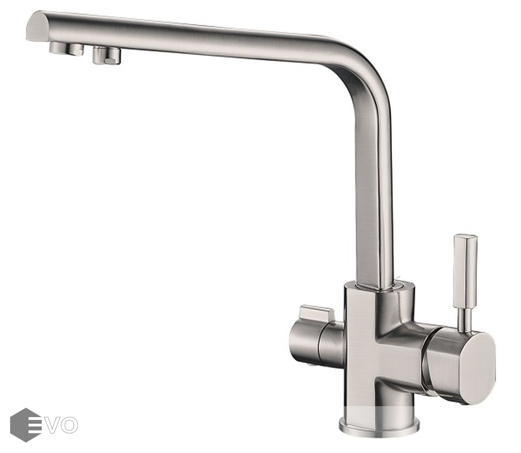 Смеситель под фильтр 2 в 1 для кухни модель SH 909 SATIN представляет коллекцию смесителей Steel Hammer. Прекрасно гармонирует с кухонными мойками ZORG из нержавеющей стали и мойками других производителей.