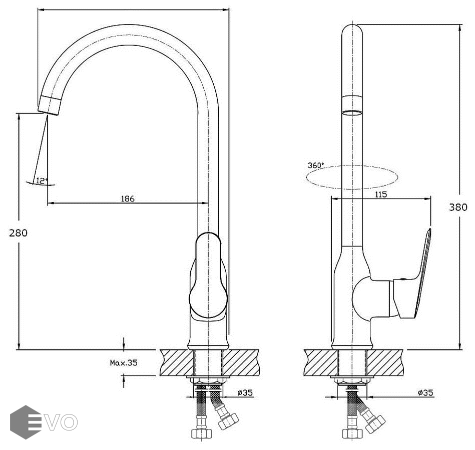 - Смеситель для кухонной мойки RUSH Crete (CR3535-23)