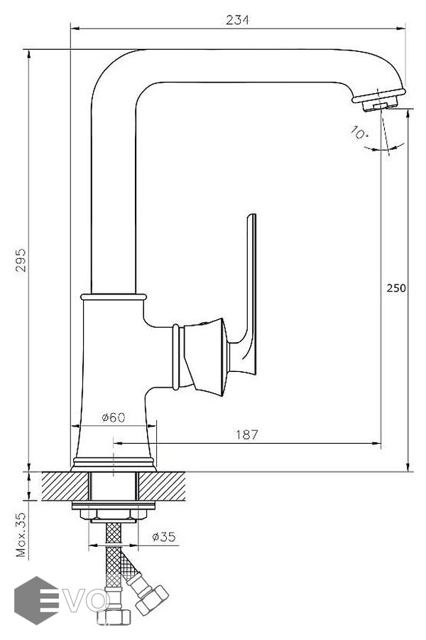 Модель оснащена керамическим картриджем, обеспечивающим плавный ход рычага смесителя, контроль и точность при выборе напора и температуры воды. Аэратор экономит расход воды, уменьшает шум и снижает количество брызг. Изделие выполнено из латуни, отличающейся прочностью, долговечностью и устойчивостью к перепадам температур, аэратор - из пластика с нержавеющим корпусом.