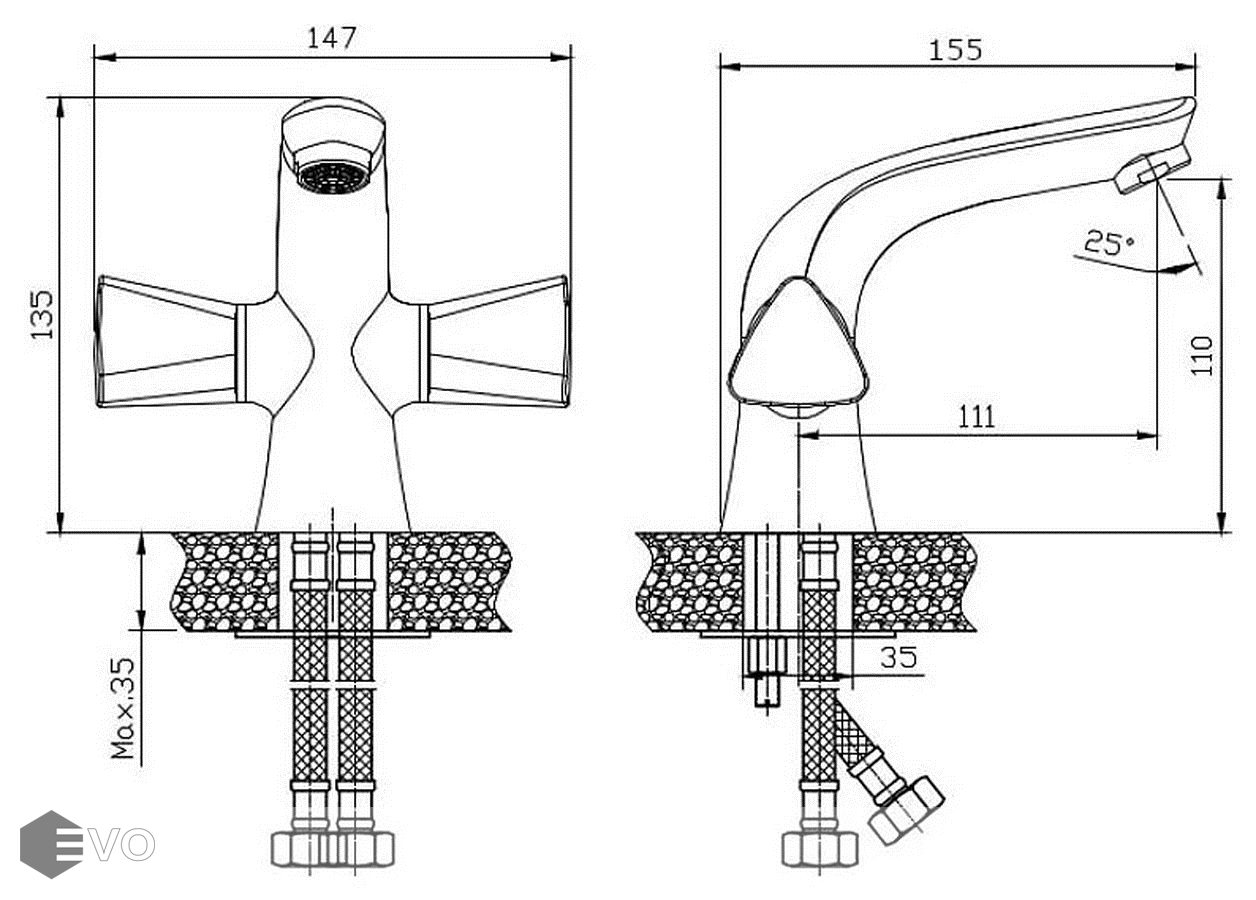 Cмеситель для раковины RUSH Andros AN2435-11 предназначен для подачи горячей и холодной воды в ванных помещениях.