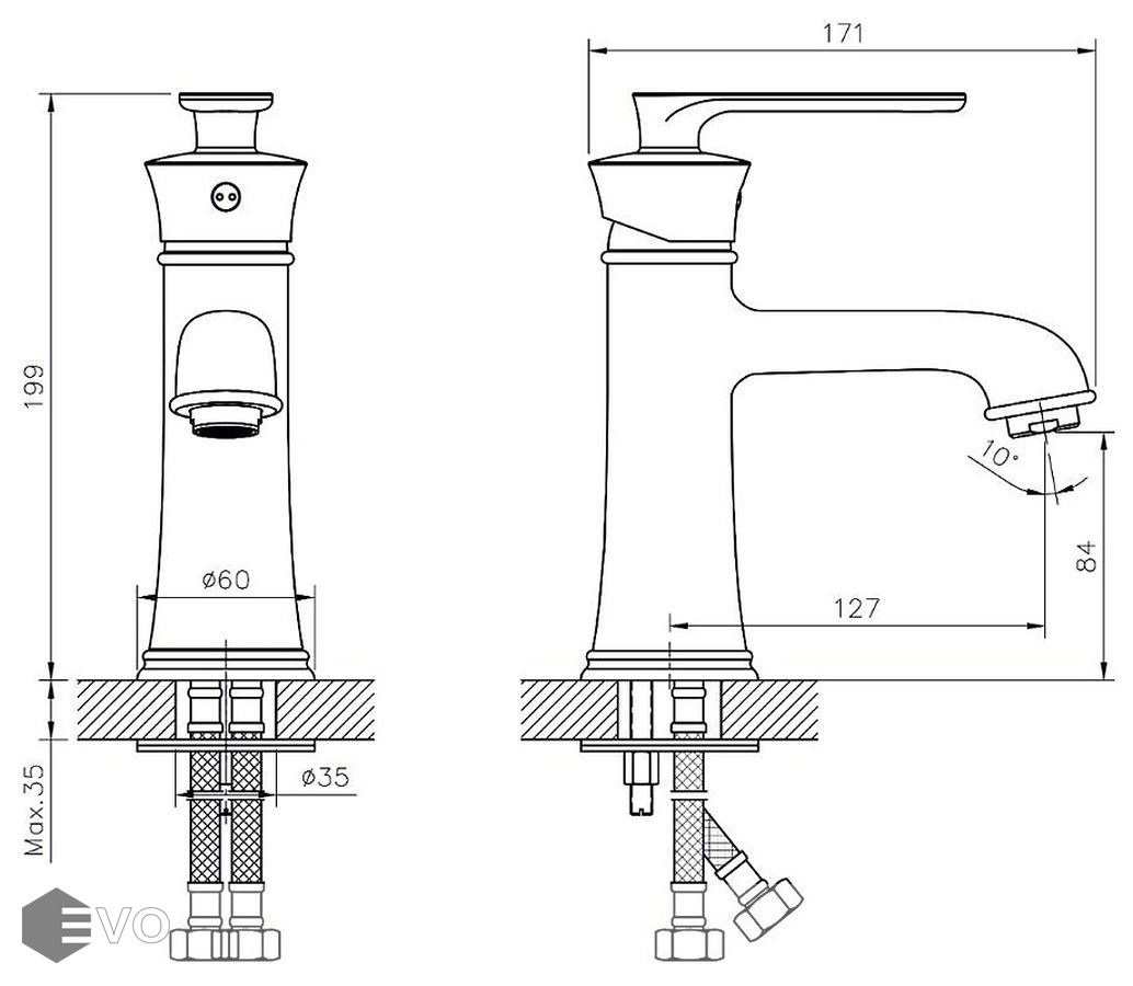 Однорычажный тип управления позволяет быстро и плавно регулировать подачу воды одной рукой. Модель оснащена керамическим картриджем, обеспечивающим плавный ход рычага смесителя, контроль и точность при выборе напора и температуры воды. Аэратор экономит расход воды, уменьшает шум и снижает количество брызг. Изделие выполнено из латуни, отличающейся прочностью, долговечностью и устойчивостью к перепадам температур, аэратор - из пластика с нержавеющим корпусом, ручка - из металла.