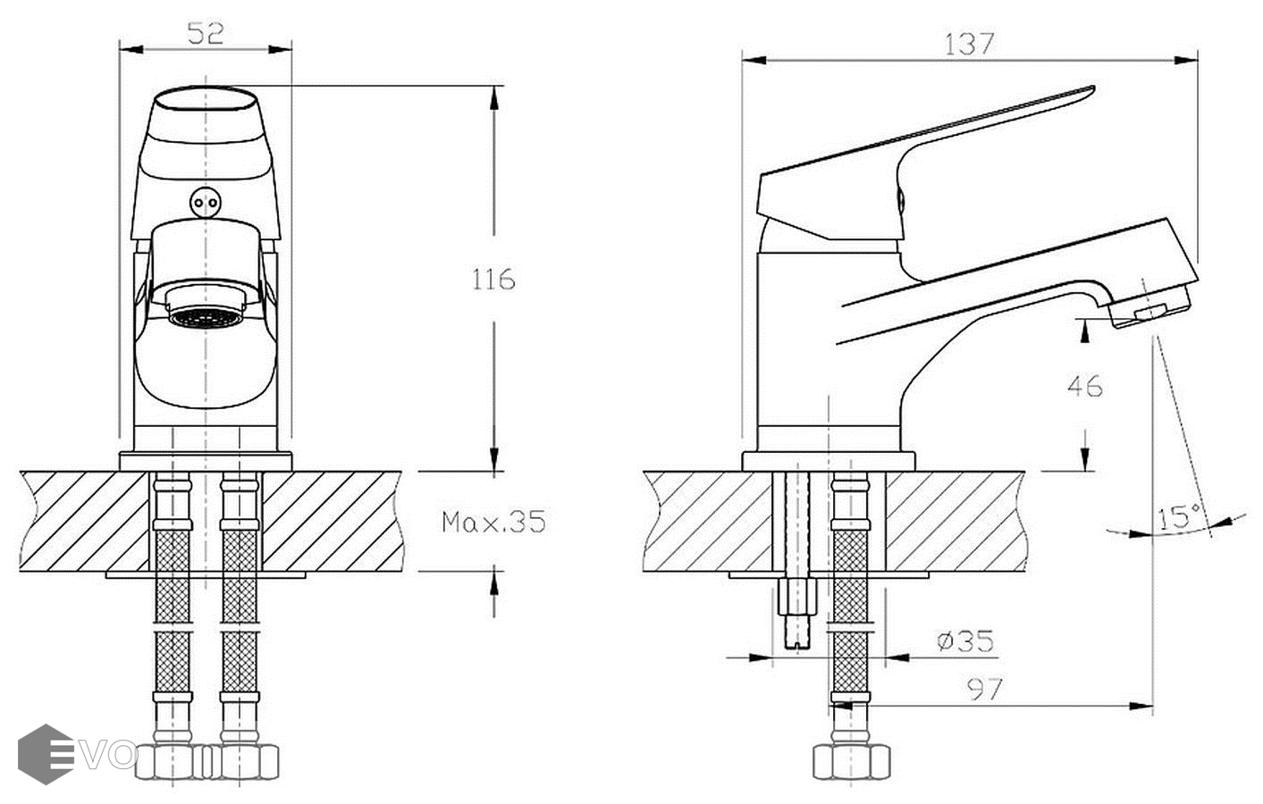 - Диаметр отверстия для установки 35 мм