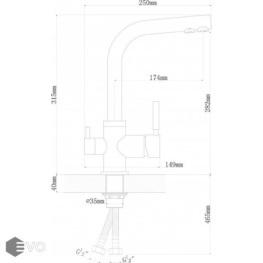 - Монтируется в отверстие кухонной мойки на шпильки. Диаметр d=35 мм