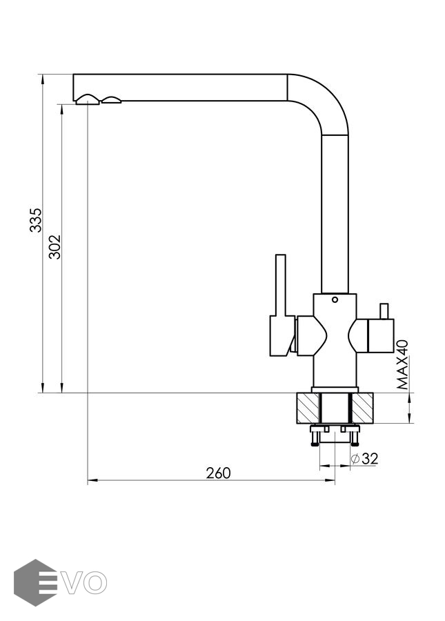 - Монтируется в отверстие кухонной мойки на шпильки. Диаметр d=35 мм
