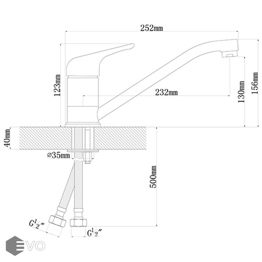 - Длина излива 232 мм