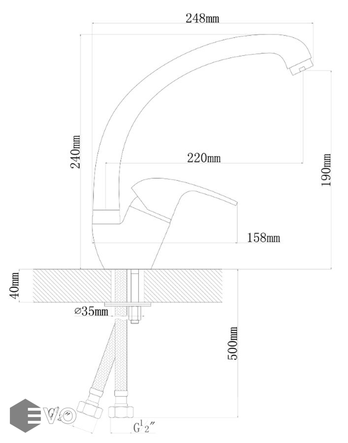 - Высота смесителя 240 мм