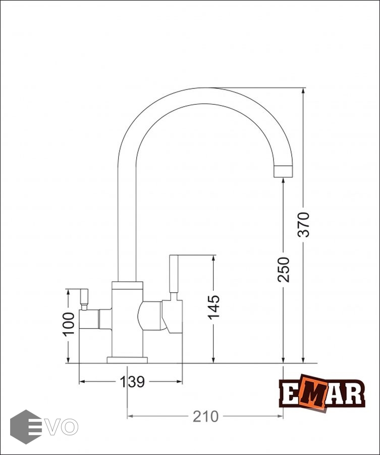 Универсальный смеситель EMAR ЕС-3007 подходит в любую гранитную мойку.