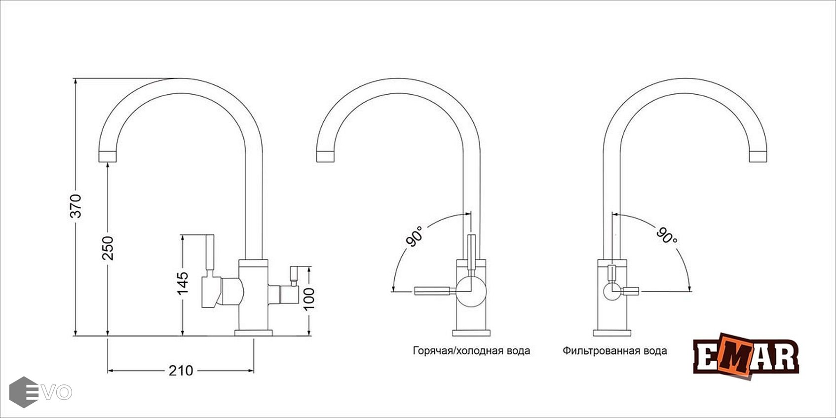 | Длина излива: | 210 мм |