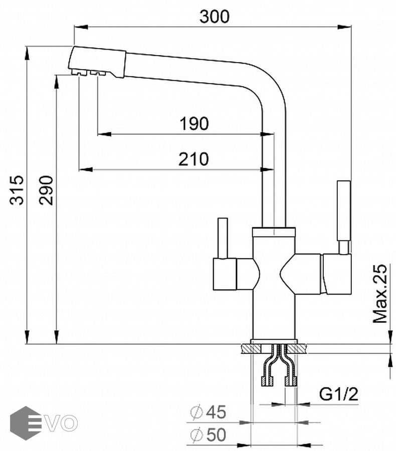 Фильтрованная вода подается по отдельной трубке и не смешивается с водопроводной водой.