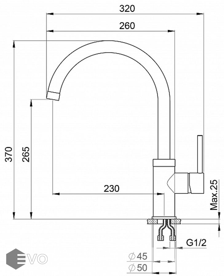 | Высота излива: | 265 мм |