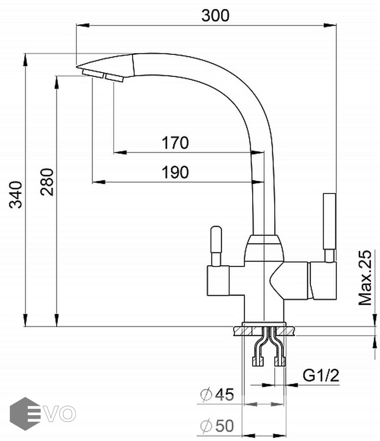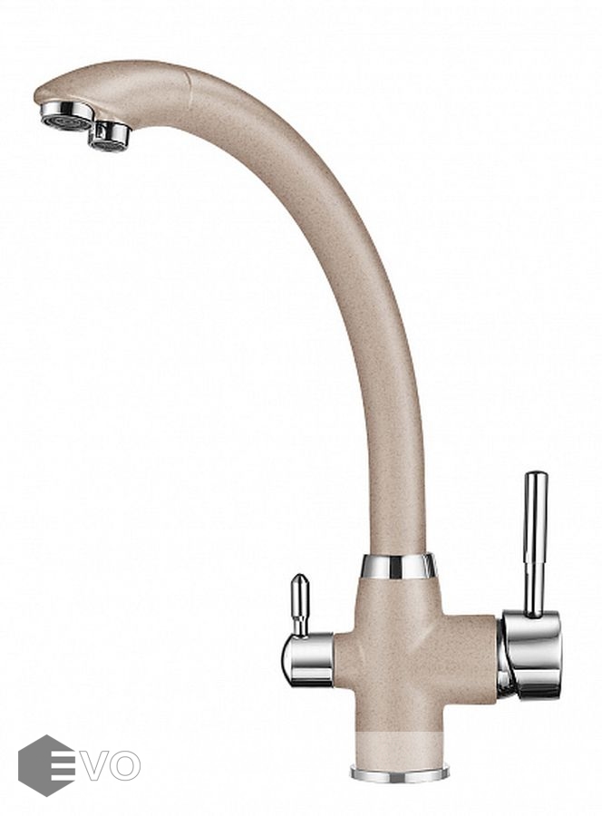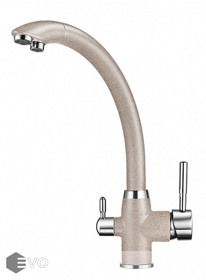 Фильтрованная вода подается по отдельной трубке и не смешивается с водопроводной водой.