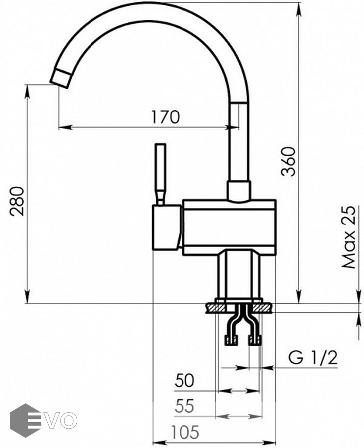 Смеситель для кухонной мойки Granula ST-31 изготовлен из высококачественного материала.