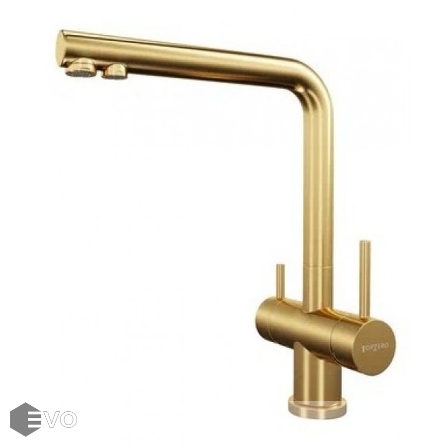 Смеситель из нержавеющей стали c PVD TopZero TPZ 301 GOLD производства TopZero является высокотехнологичным оборудованием и обеспечивает не только смешивание и подачу горячей и холодной воды, но и подвод питьевой воды от фильтра через отдельный канал, и все это встроено в один корпус.