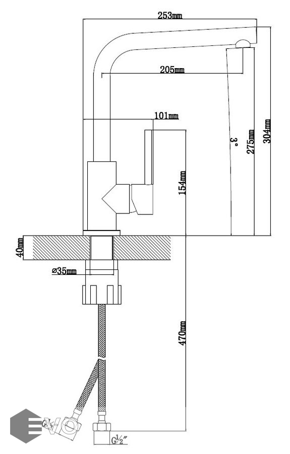 - Подводка: Гибкие, в оплетке из нержавеющей стали