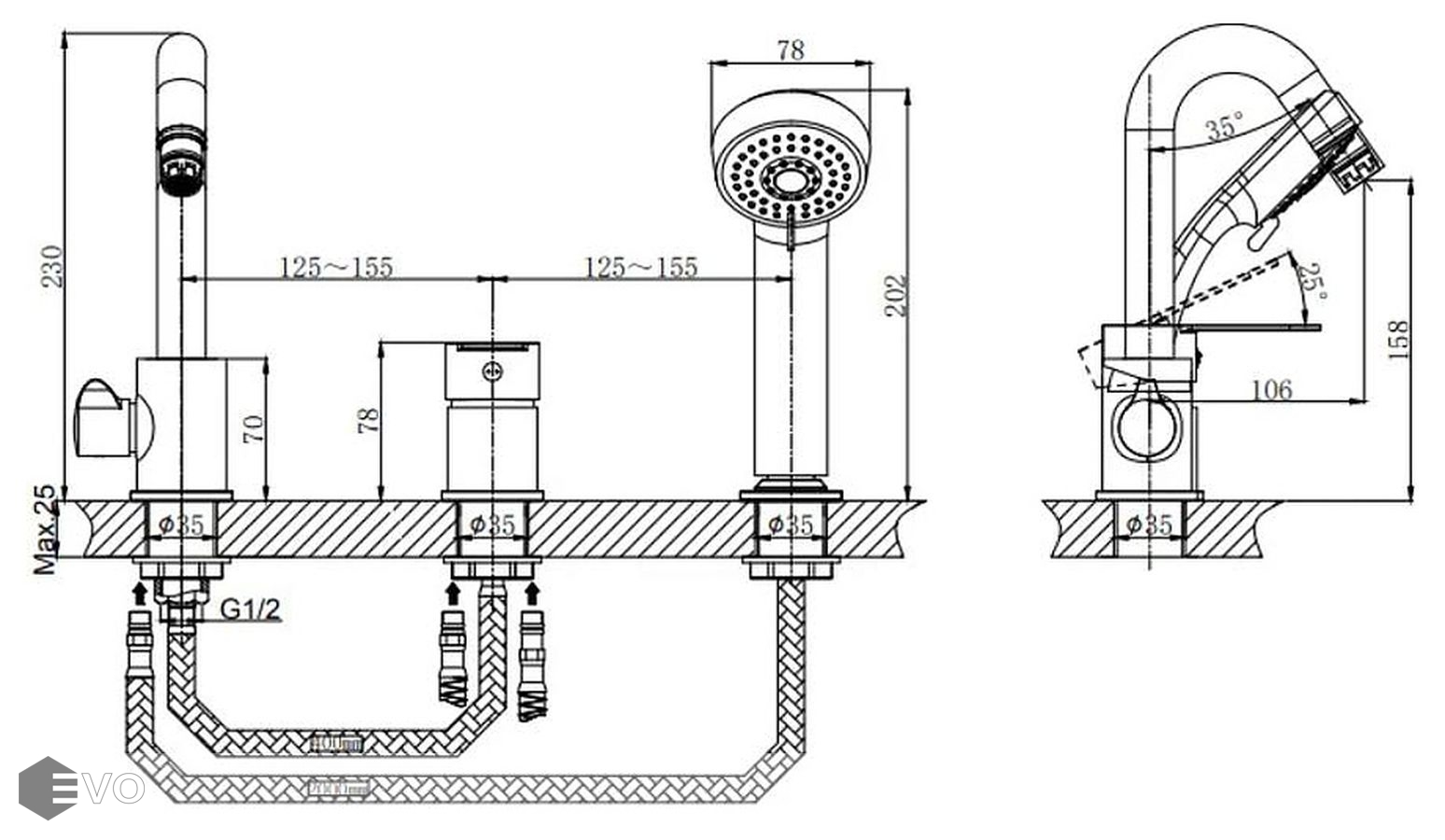 Особенности: Гибкая подводка, Переключатель с керамическими пластинами, Однорежимная душевая лейка, Глянцевая поверхность.