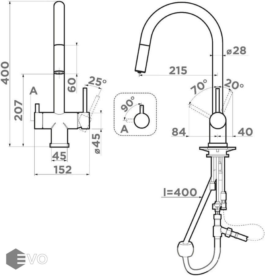 | Тип излива: | выдвижной гибкий для фильтрованной воды поворотный |