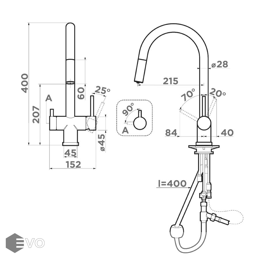 | Тип излива: | выдвижной гибкий для фильтрованной воды поворотный |