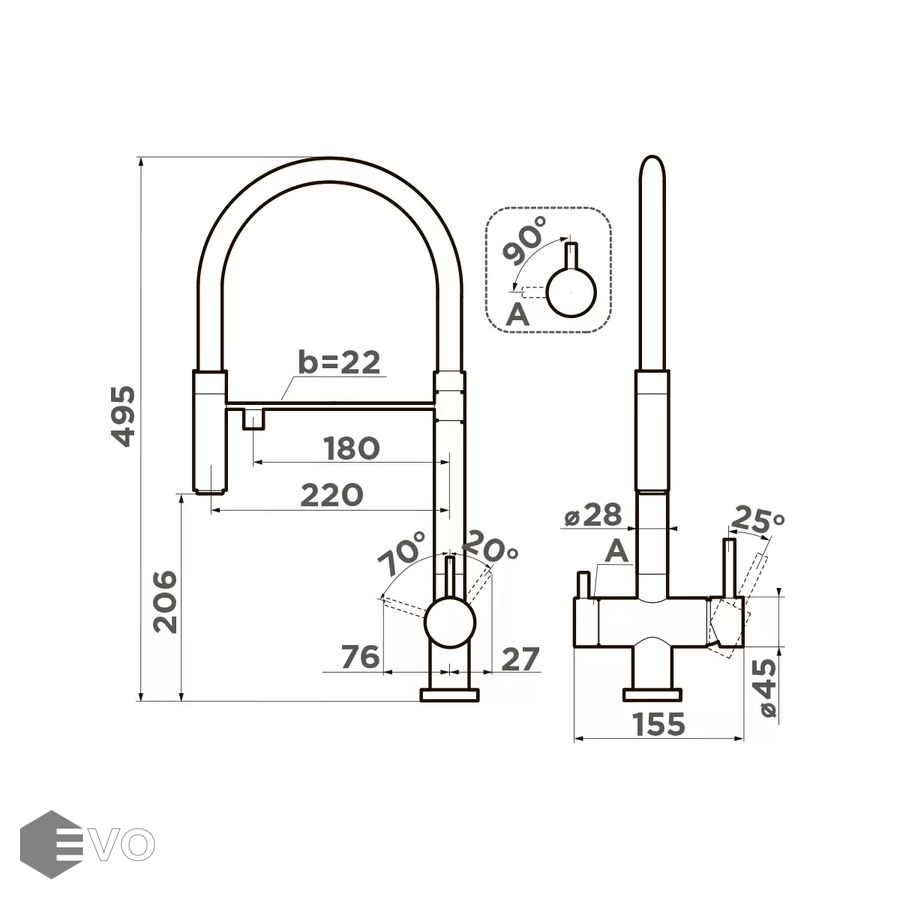 | Особенности: | PVD покрытие встроенный кран для питьевой воды выдвижной излив гибкий излив |