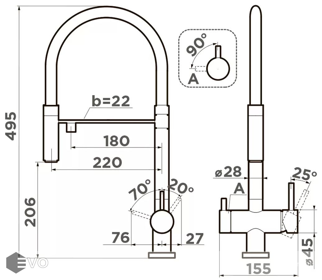 Высота излива: 206 мм