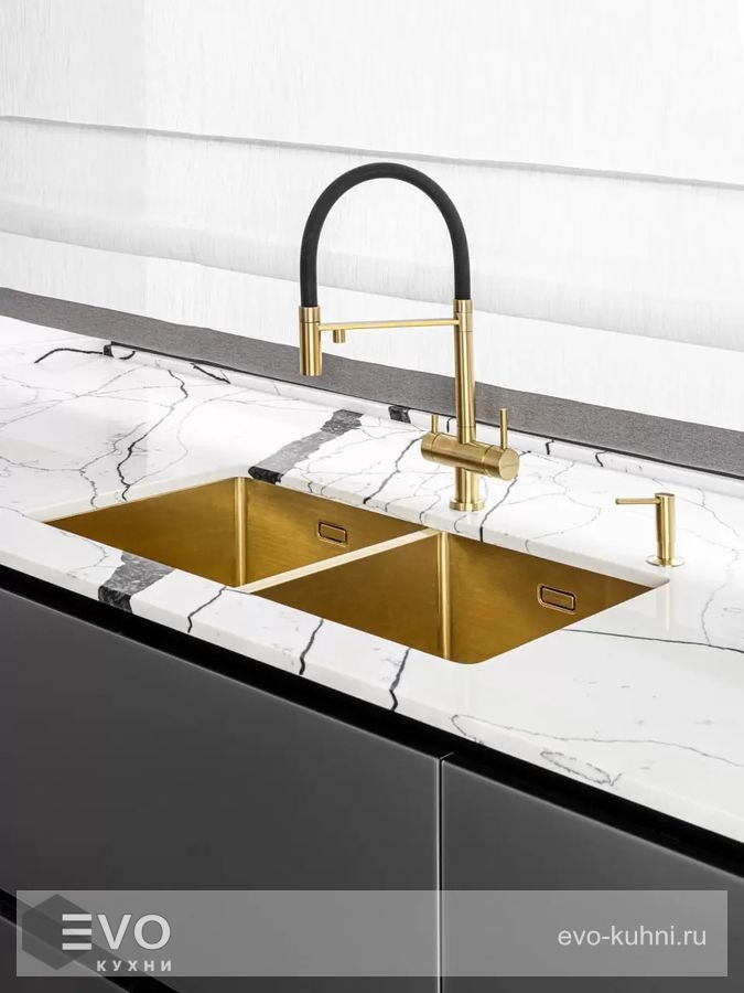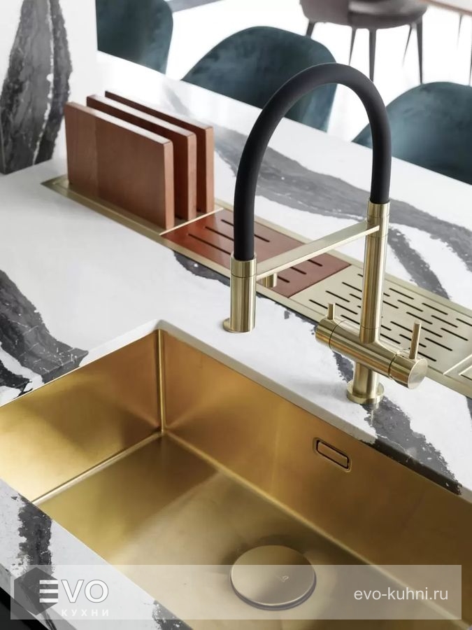 Особенности: PVD покрытие встроенный кран для питьевой воды выдвижной излив гибкий излив