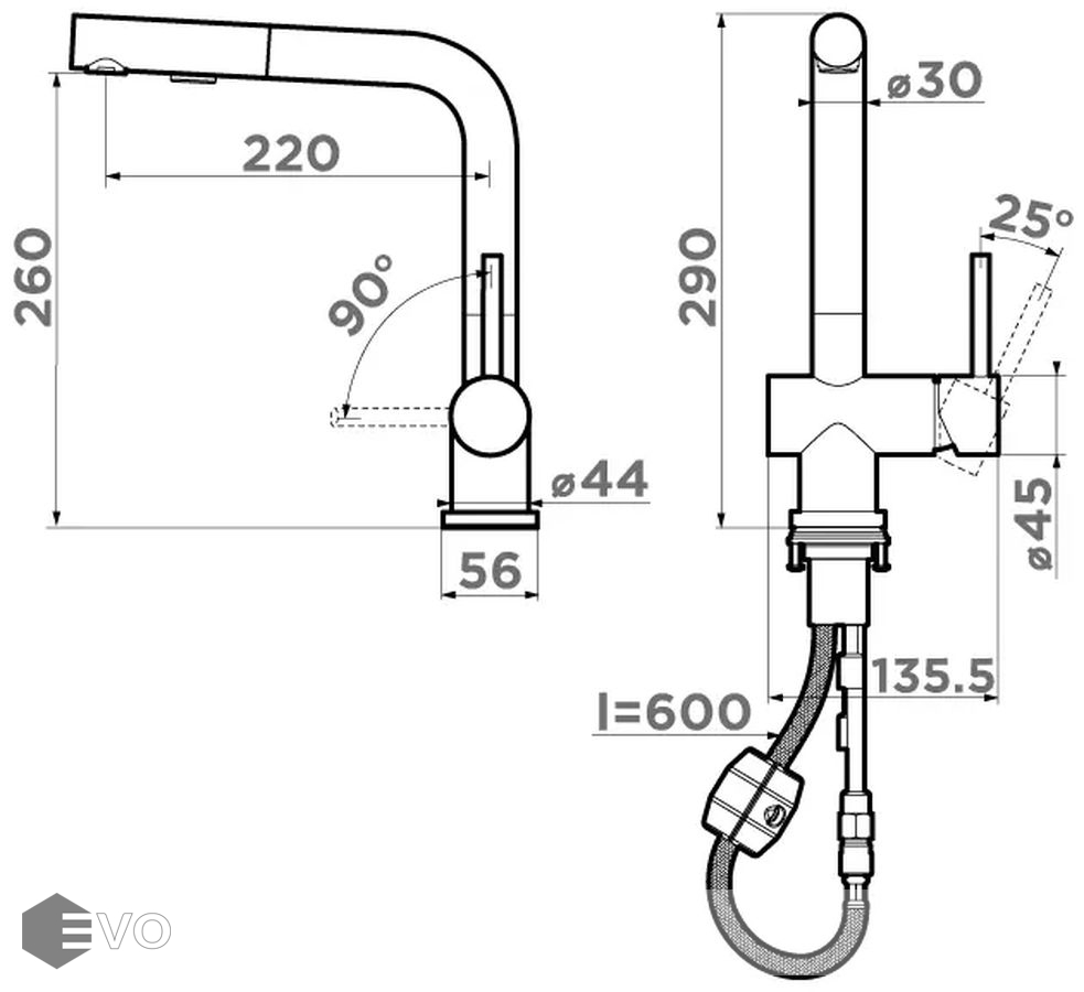 | Высота излива: | 260 мм |
