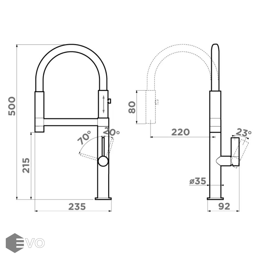 - Эксклюзивный классический дизайн и удобство использования благодаря высокому изливу. Шланг на магните позволяет увеличить длину излива;