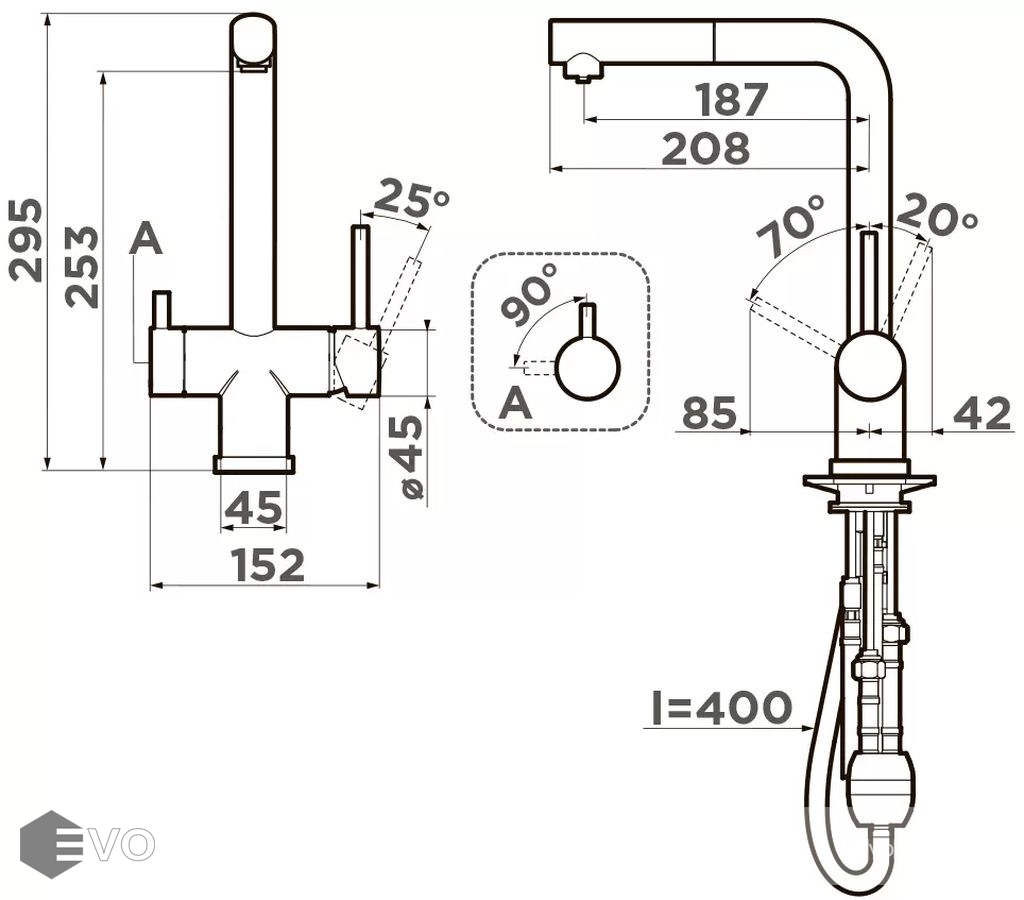 | Особенности: | встроенный кран для питьевой воды выдвижной излив гибкий излив |