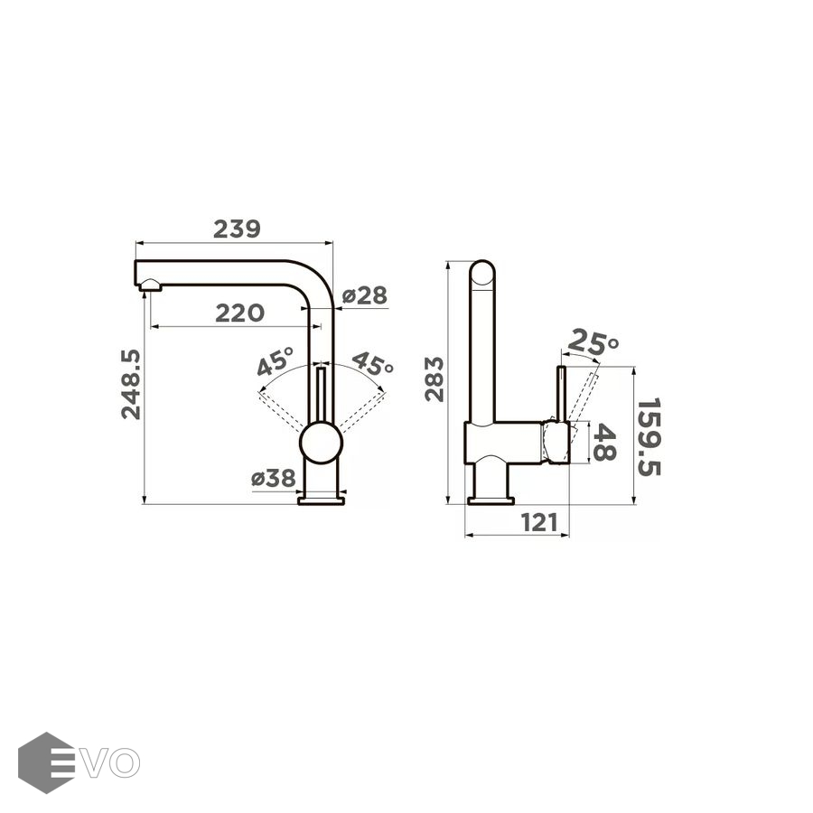 - Практичный однорычажный смеситель выполнен в современном стиле и снабжен высоким поворотным изливом;