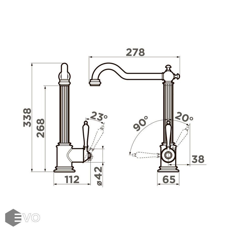 - Высота смесителя, мм: 338