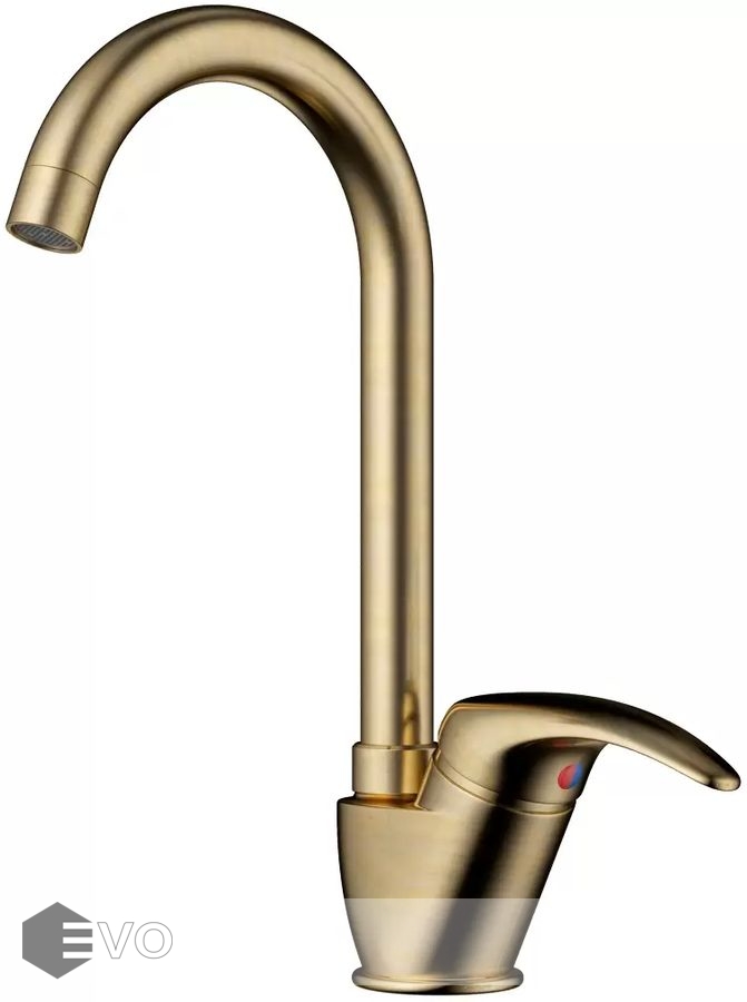 - Смеситель выполнен в современном стиле и снабжен высоким поворотным изливом, что гарантирует максимальное удобство на кухне;