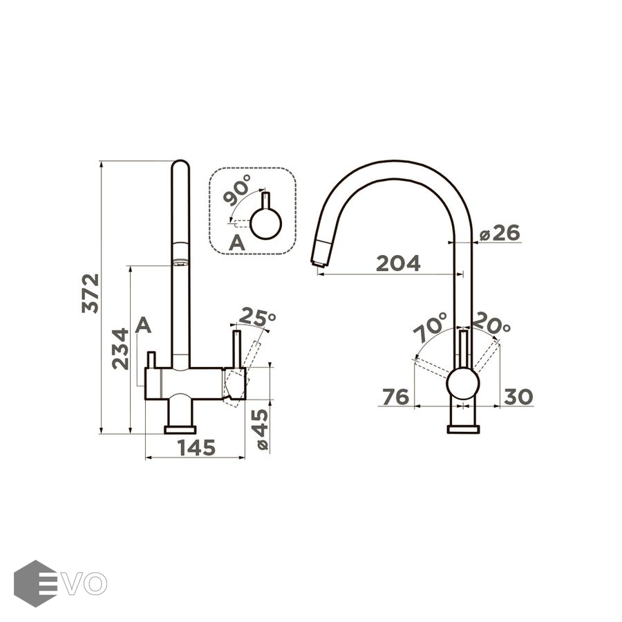 - Длина излива, мм: 204