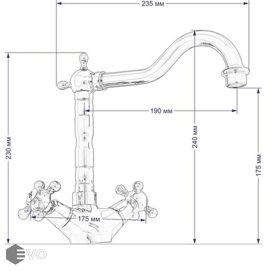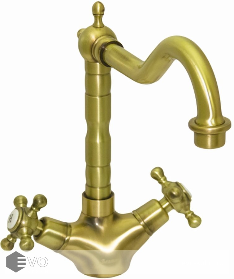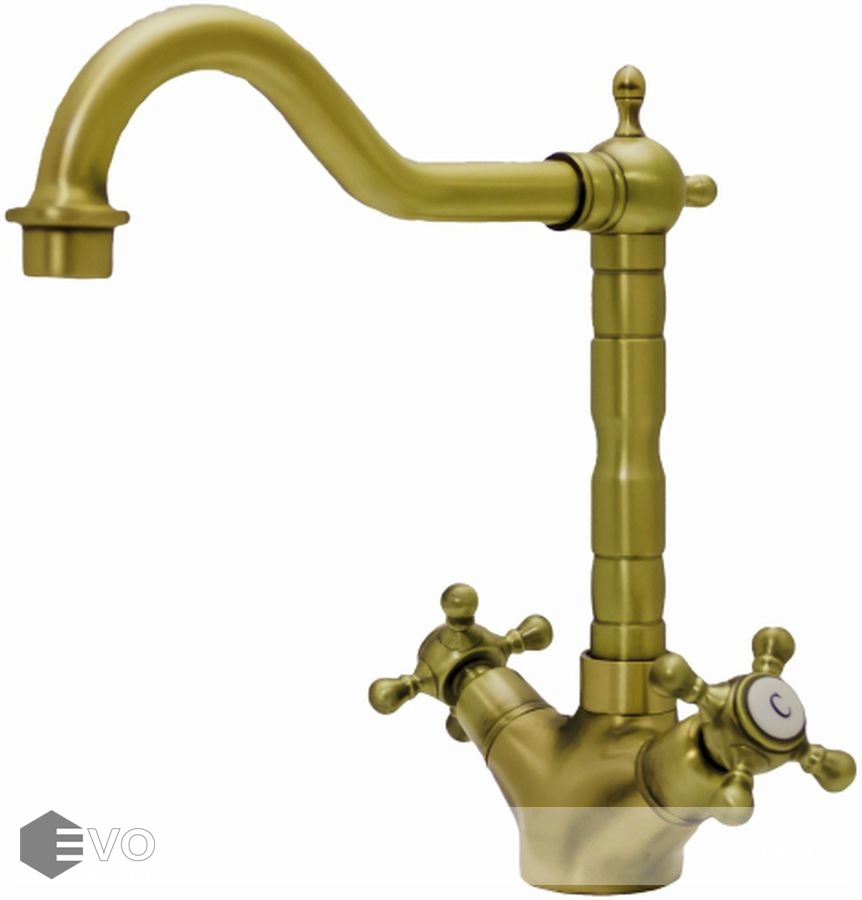 Seaman Barcelone SSL-5079 Antique Gold (PVD + patina) - двухзахватный смеситель для кухни из высококачественной латуни с PVD покрытием, в стиле "ретро"