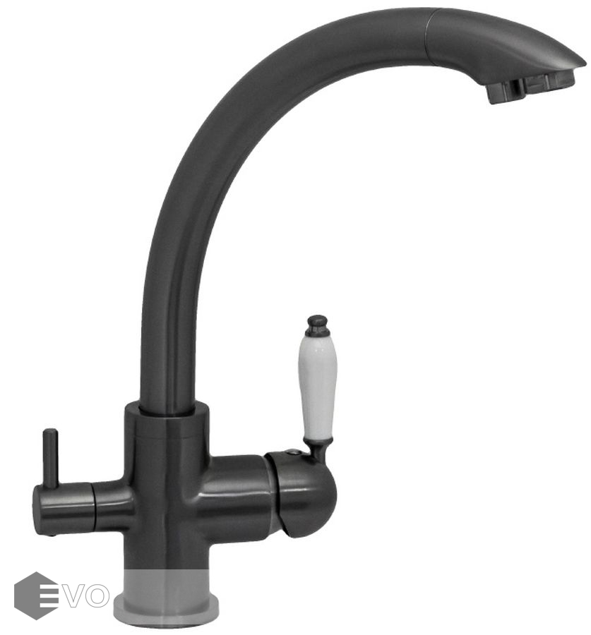 Смеситель Seaman Barcelone SSL-5382 Gun Light (PVD) - однозахватный смеситель для кухни из высококачественной латуни с PVD-покрытием и подключением фильтра для питьевой воды, в неоклассическом стиле.