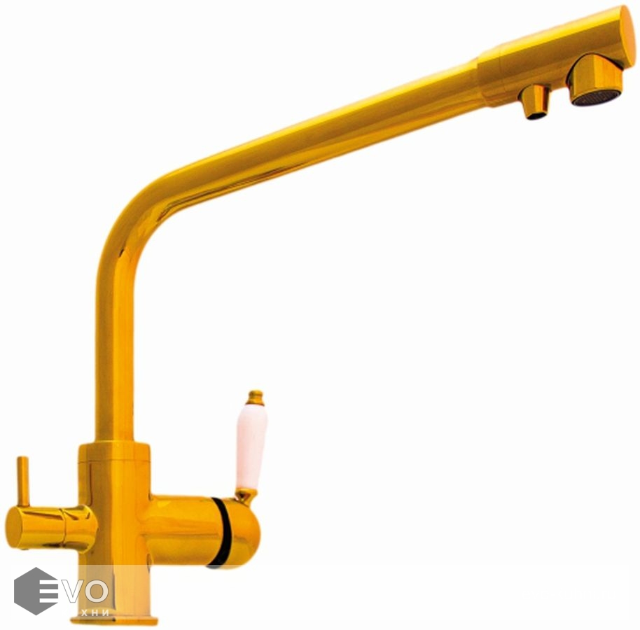Смеситель для кухни с PVD-покрытием, в стиле "ретро". PVD покрытие - это метод нанесения покрытия, который проводится под высоким давлением в вакууме посредством бомбардировки ионами, испарения-конденсации, металлизации напыления. Именно благодаря вышеуказанным химическим процессам получается такое сверхпрочное покрытие без каких-либо примесей. Данное покрытие обладает следующими свойствами: коррозионно-стойкое, износостойкое, проводящее, эрозионностойкое, изолирующее, барьерное, антифрикционное, защищает изделие от царапин.