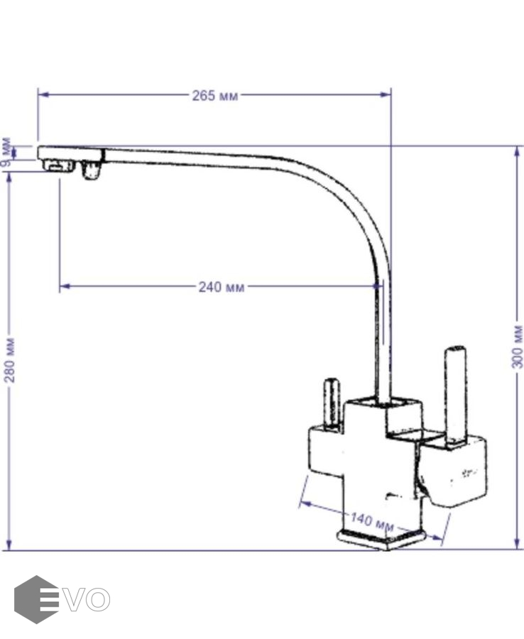 - Высота смесителя 300 мм