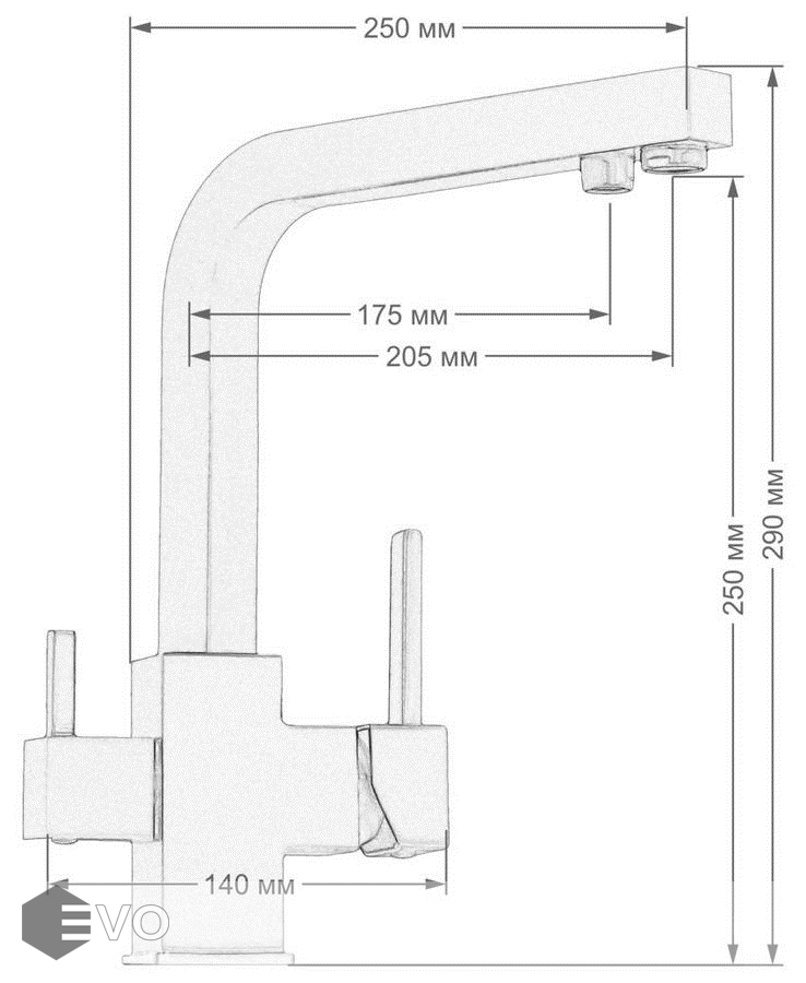 - Тип смесителя: с переключателем для фильтра (комбинированный)