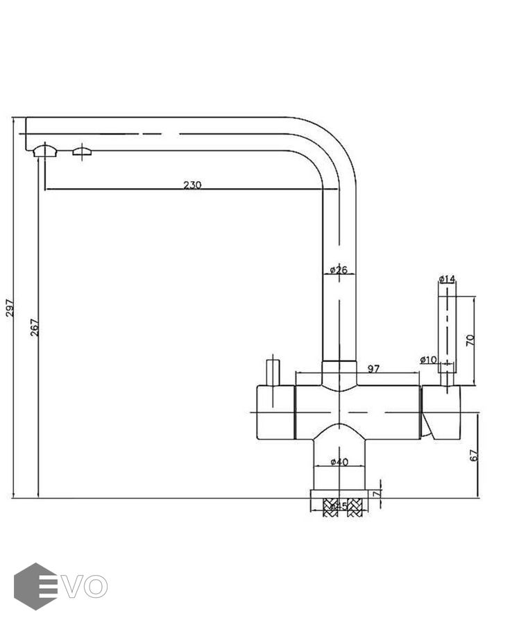 - Длина излива 230 мм