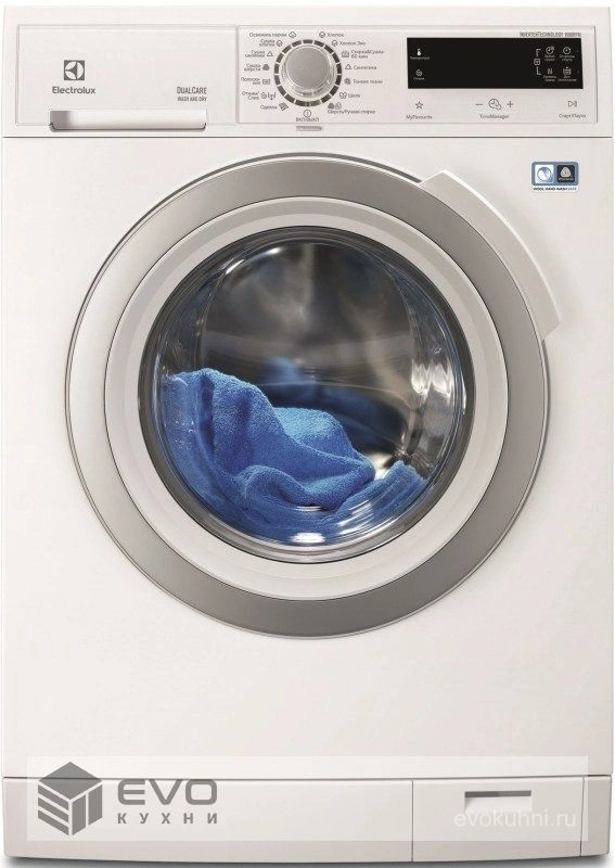 Фронтальная загрузка, стирка 9 кг / сушка 6 кг, отжим 1600 об/мин., классы A/A, глубина 60 см, большой цифровой ЖК дисплей, инверторный двигатель, технология стирки DirectSpray, сенсор защиты от протечек, счетчик залива воды, разглаживание и освежение белья при помощи пара, WOOLMARK BLUE WASH&DRY.